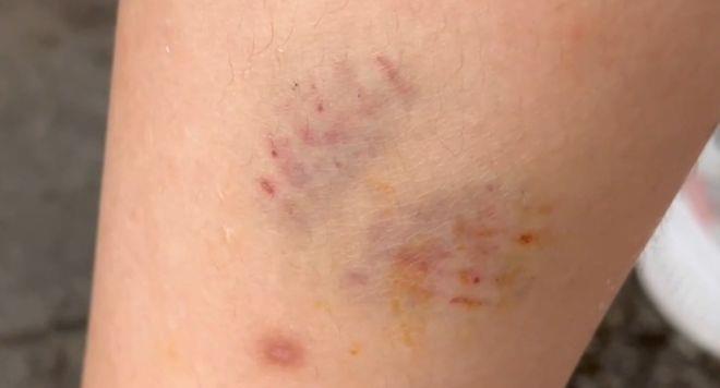 男主人:我现在还在怀疑,她是不是骑自行车摔跤的。有淤青块,狗如果咬伤不是这样的,是有牙齿印子的。